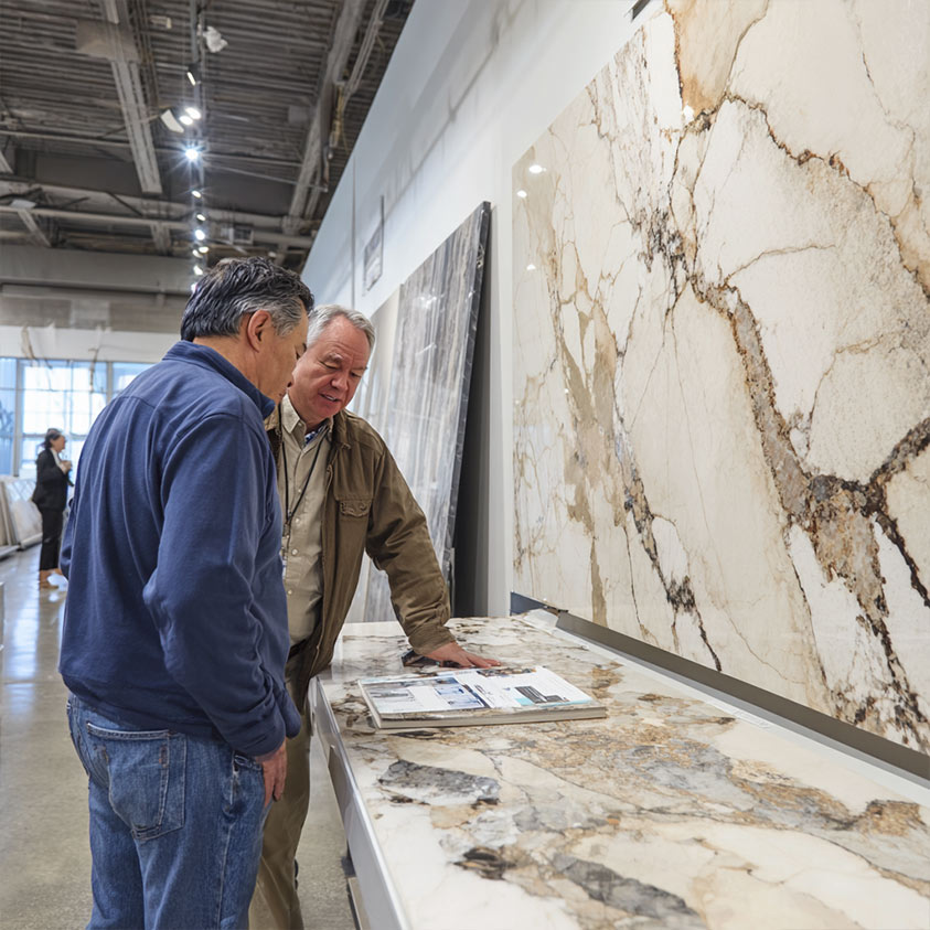 See the beauty of natural stone in person. Browse a wide selection of quartz, granite, marble, and quartzite in our showrooms, or view full slabs at our Springfield location. Touch, compare, and get inspired.